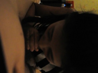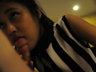 Shy Asian teen chick sucking on his cock