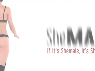 Latina t-girl in jeans skirt reveals boobs and shaved dick