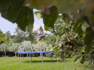 Trampoline big tit blows thick dick