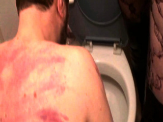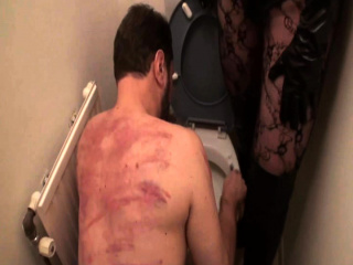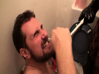 Femdom ladies humiliate slave at the toilet