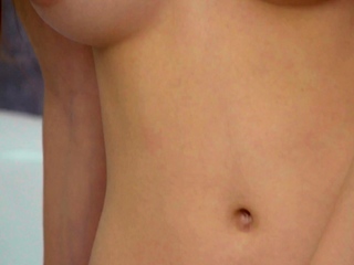 Slender teen Lina Luxa making love with her glass dildo