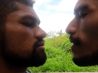 Amateur bearded latin hunks get naughty at the beach