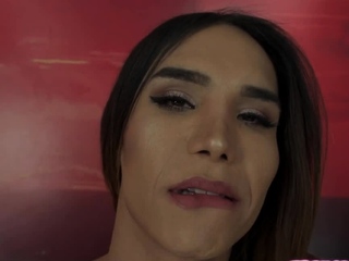 Busty latin tgirl tugging bigdick