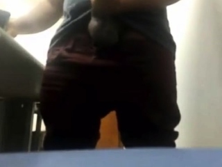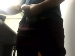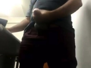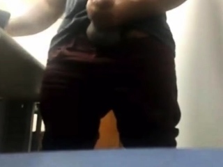 MILKING HIS BIG UNCUT BRAZILIAN DONKEY DICK AT WORK