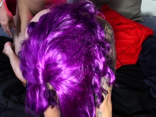 Purple haired girlfriend likes to be fucked hard