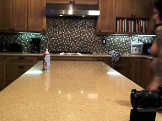 Attractive brunette teenager with big boobs fingering pussy