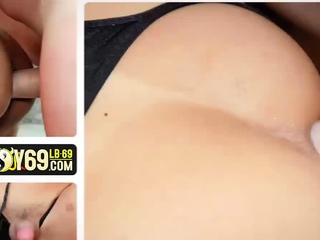 Teen Asian shemale in black lingerie teases with her