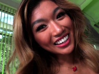 POV Asian babe rides cock in closeup