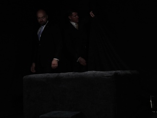 BoyForSale Cole Blue is spit roasted between suited daddies