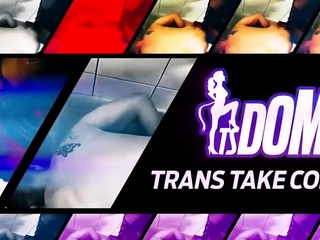 Blonde tranny in leather boots gets a blowjob before