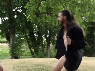 CFNM outdoor British babes suck in group