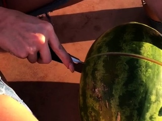 Sexy blonde babe Vega Vixen hot solo masturbation outdoors