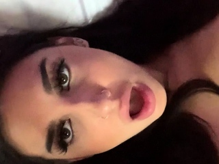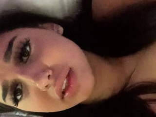 Busty babe playing with her big boobs