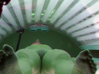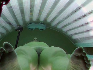 Brunette with tiny tits in solarium