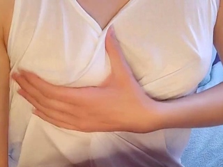 Horny Babe in a White T-Shirt Dildo Orgasm Solo