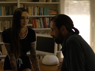 Cockhungry inked babe bounces on DILF