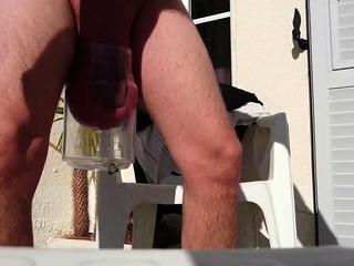 Giant balls pumping hunk outdoors