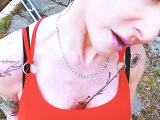 Horny bigtitted MILF doggyfucked outdoor
