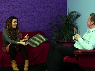 Stunning voyeur watching guy jerking
