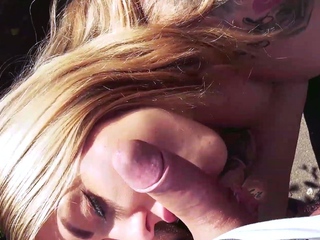Gorgeous German sucks a cock outside