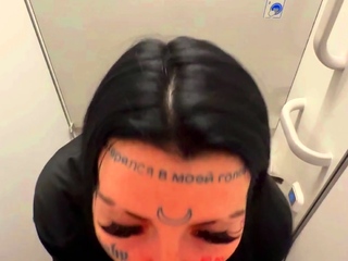 Almost caught fucking on a plane with massive creamy facial